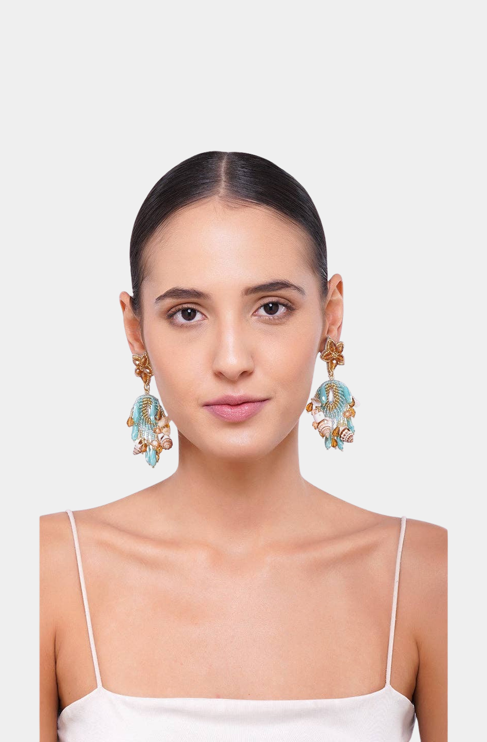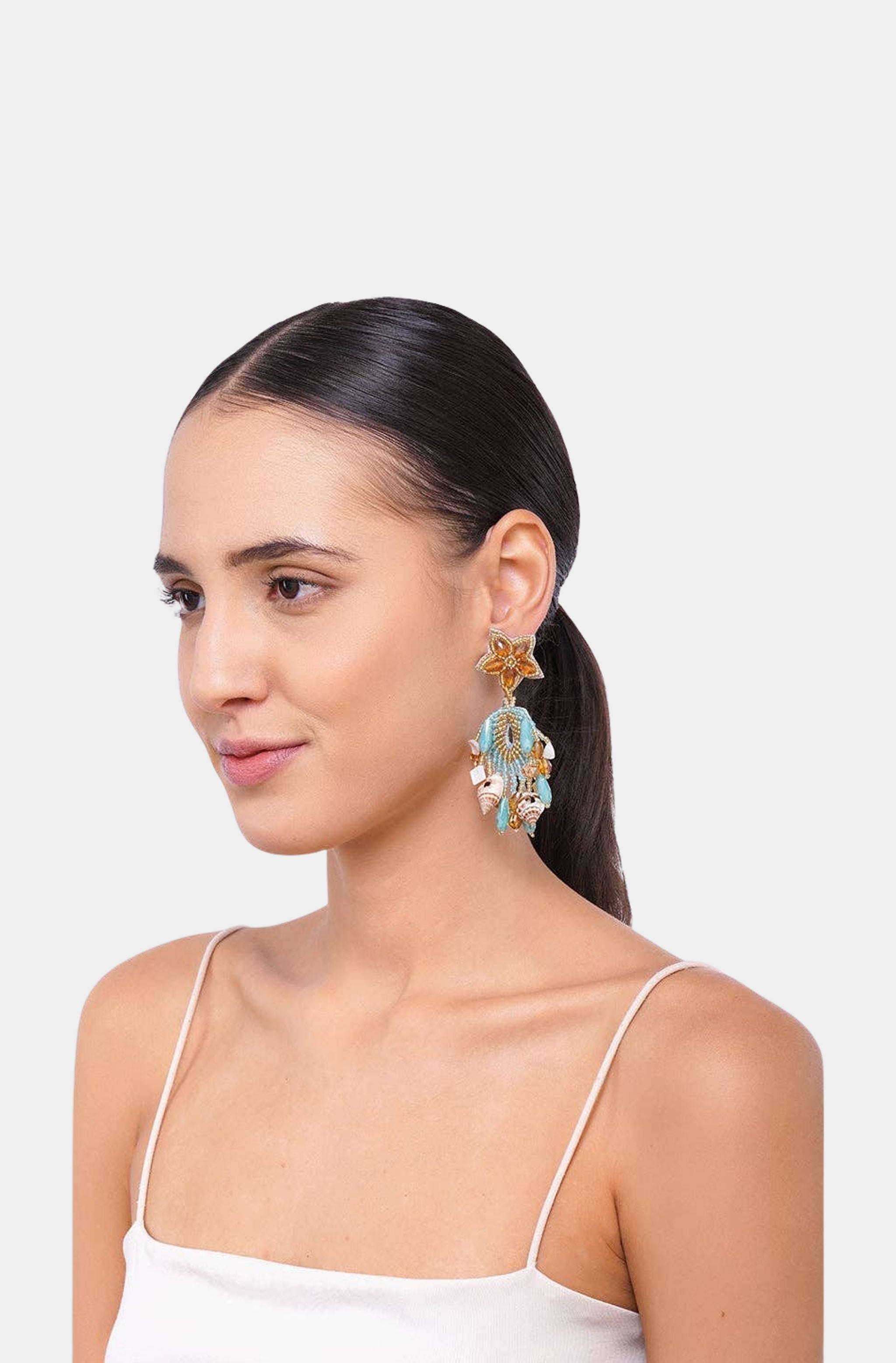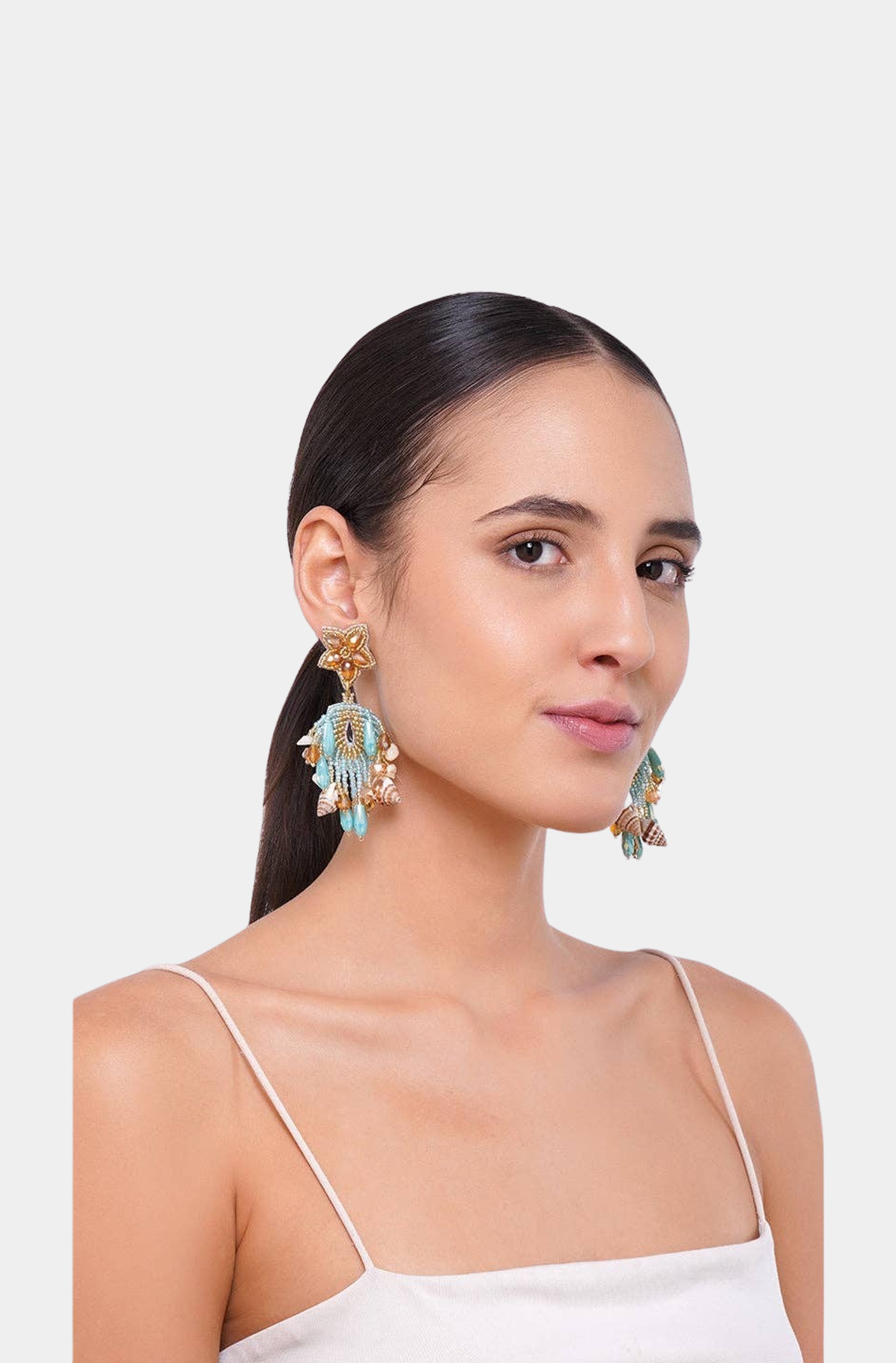 Aqua Beaded Shell Earrings