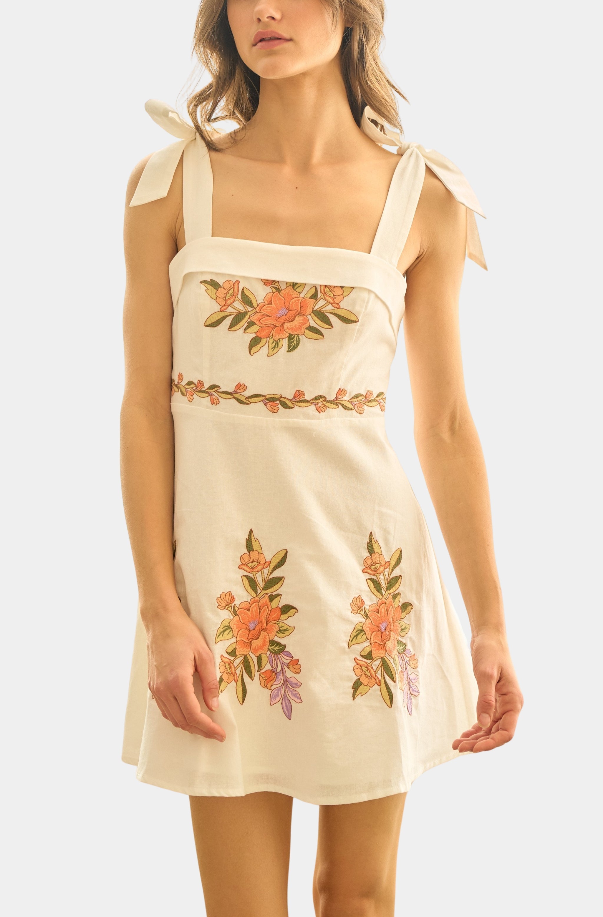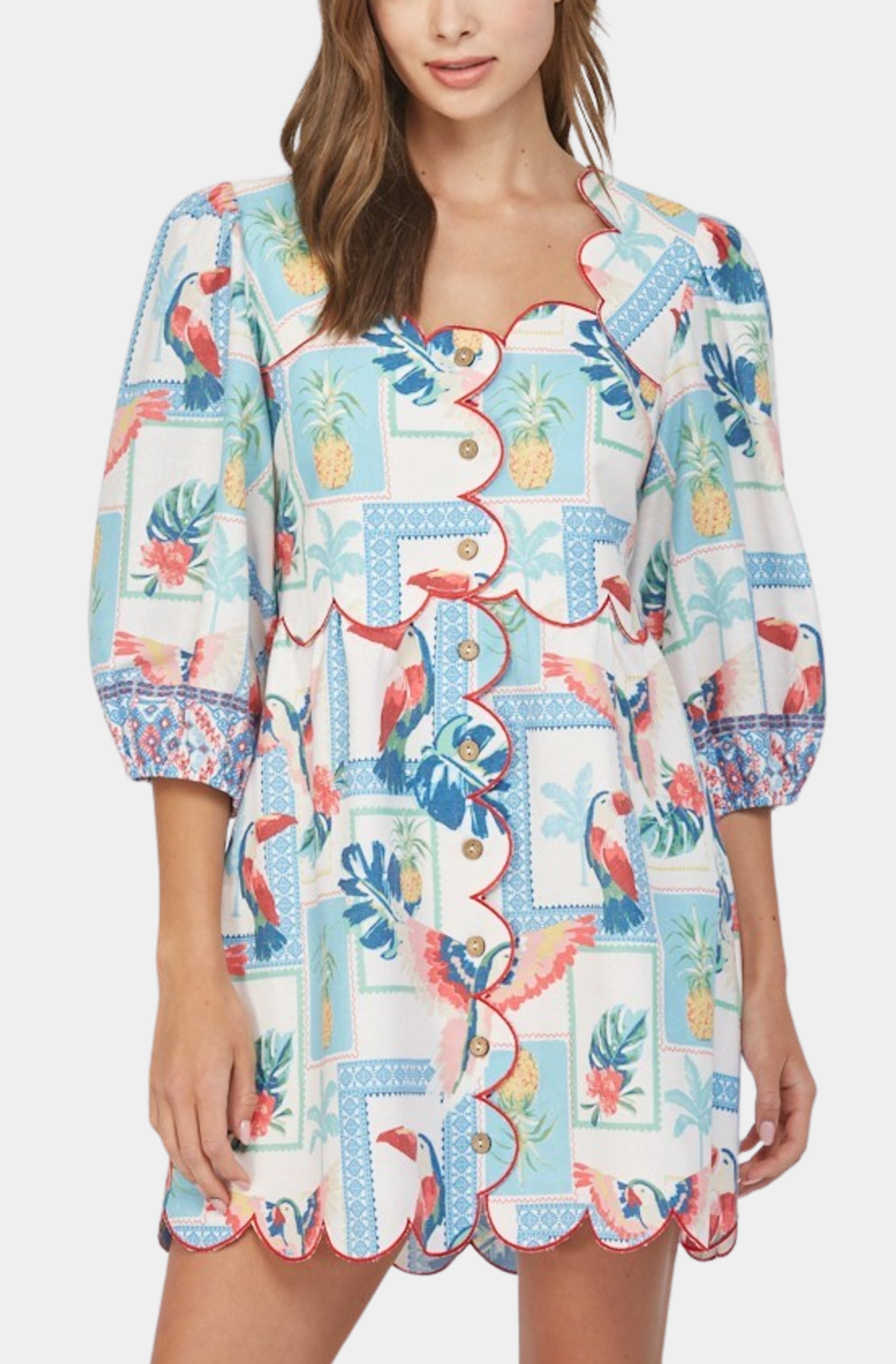 Farm Rio Sand Coconut Sleeveless Mini Dress
