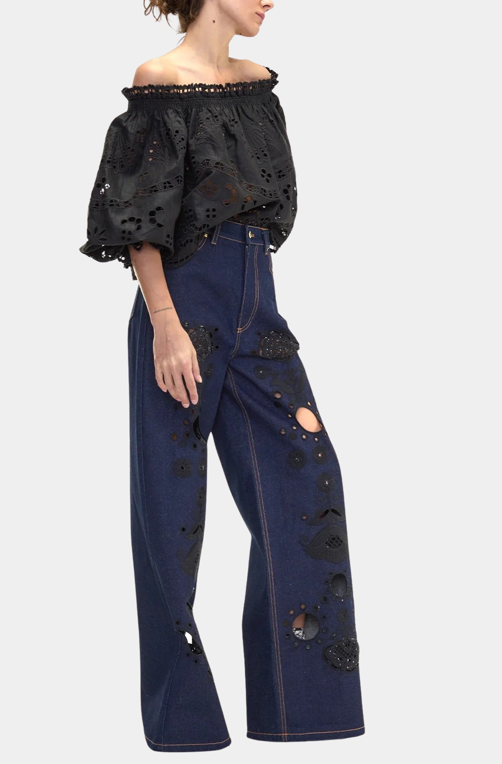 Amazing Low Rise Baggy Jean with Embroidered Patches