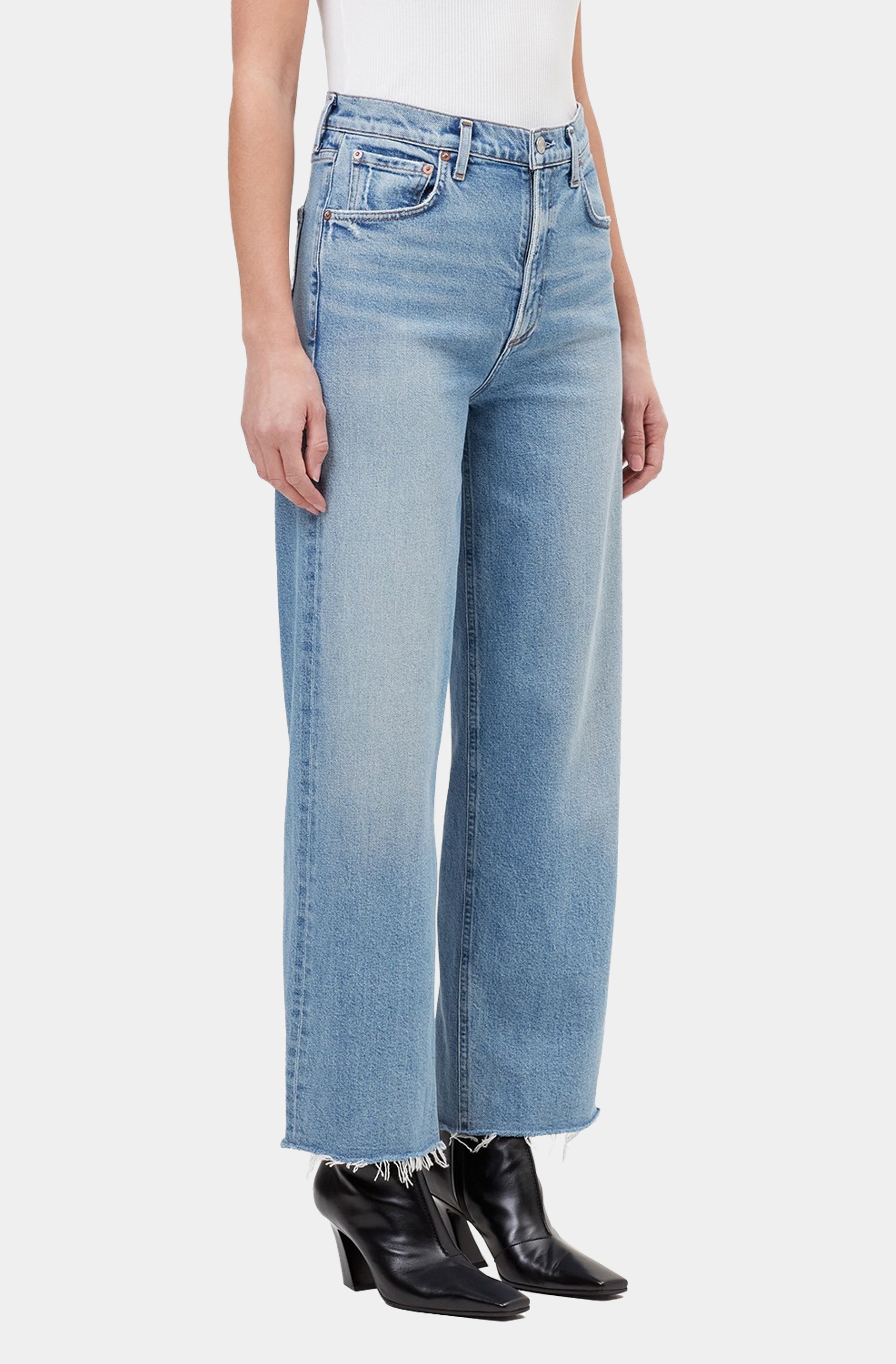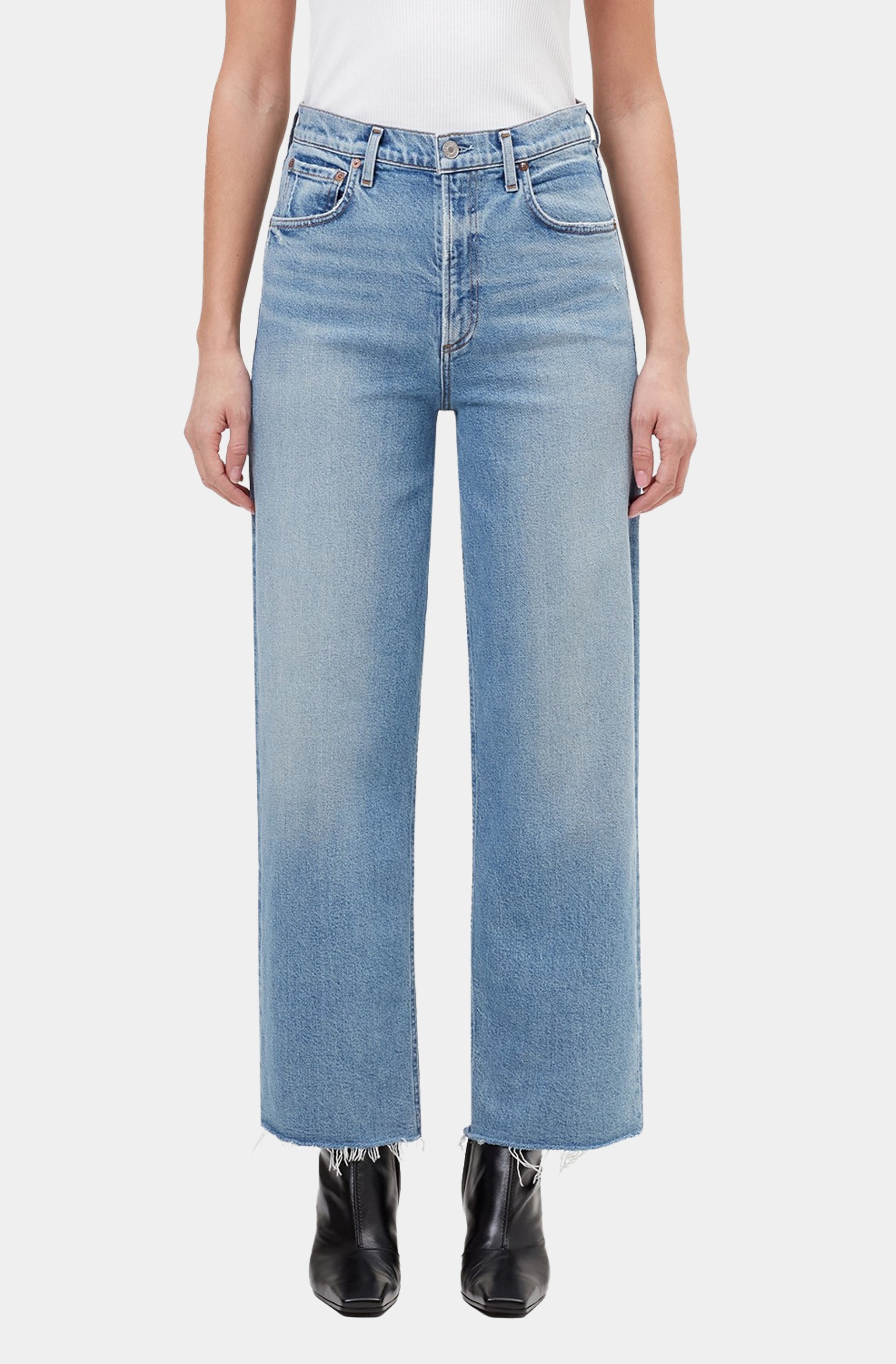 Rosie High-Rise Wide Leg Ankle Raw Hem