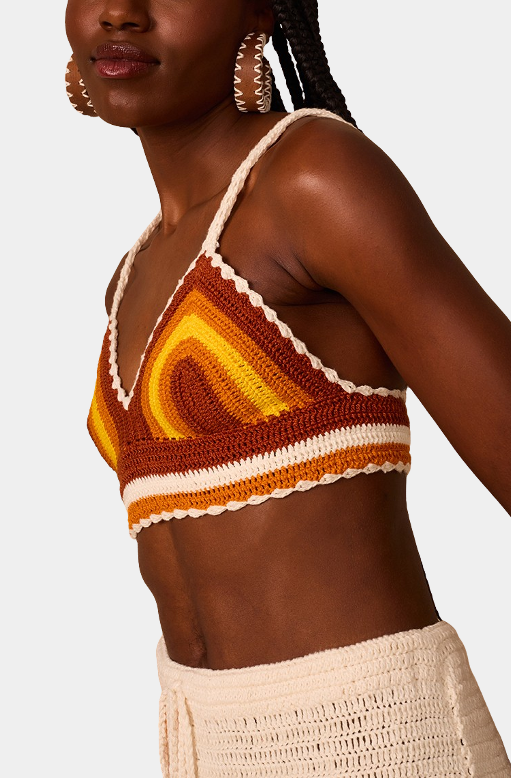 Available in vibrant coral orange and earthy brown, this crop top is designed to capture the essence of a sunset. The intricate crochet pattern adds a touch of bohemian flair, making it an ideal choice for beach outings or casual gatherings. Lightweight and breathable, it ensures you stay cool and stylish all day long.