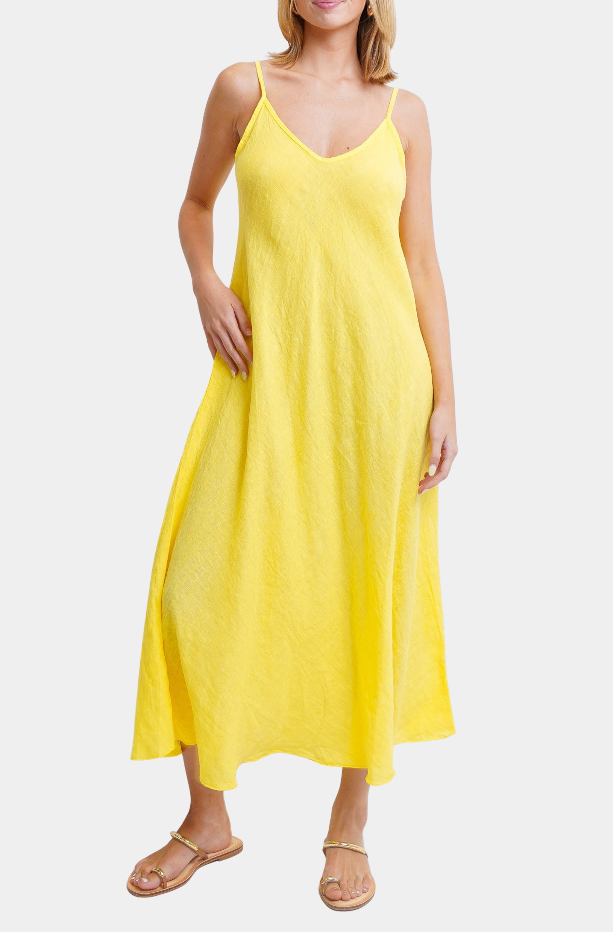 Elevate your wardrobe with the Italian Maxi Slip Dress. Crafted from premium linen, this dress offers a breezy, lightweight feel perfect for warm days. Its elegant maxi length and slip design provide a flattering silhouette, making it a versatile choice for both casual outings and special occasions. Embrace effortless style with this timeless piece.