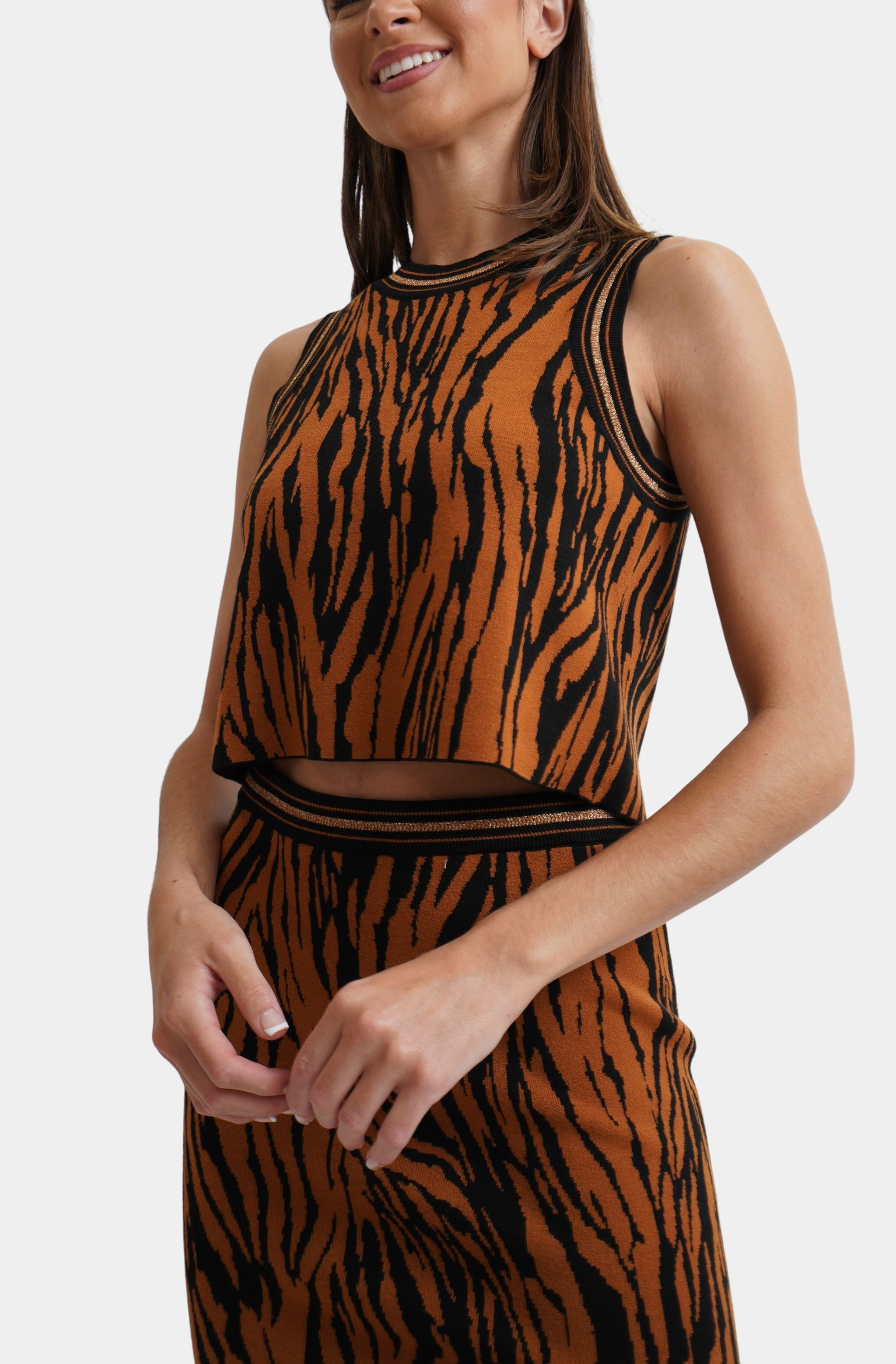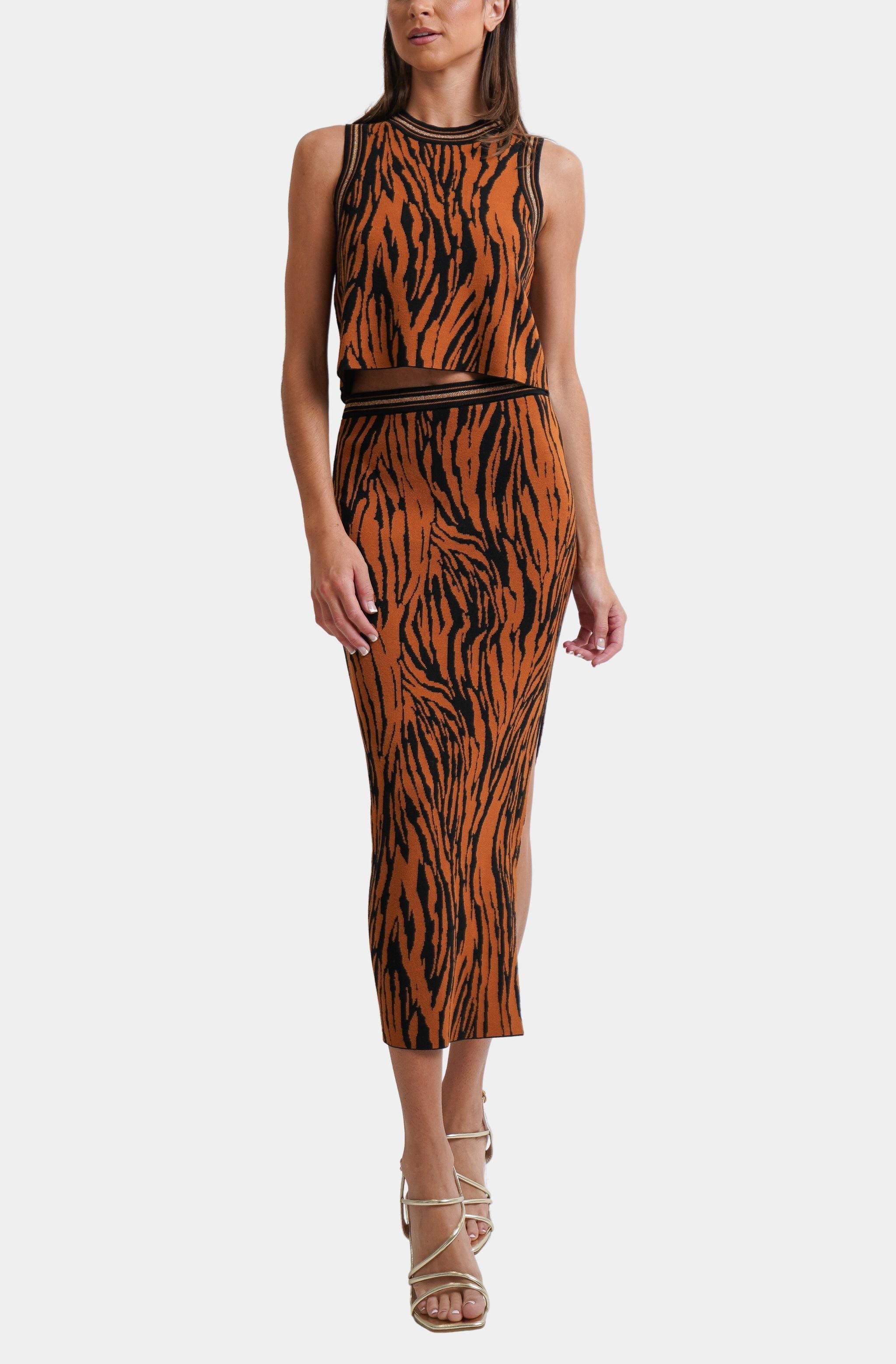 Upgrade your wardrobe with this sophisticated set. Crafted from luxurious fabrics and featuring an eye-catching design, this top and skirt combo is the ultimate in elevated style. Perfect for any occasion, this wildly neutral set is a must-have addition to your collection.